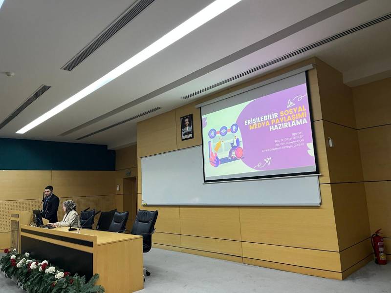 Sakarya Üniversitesi Engelsiz Yaşam ve Destek Koordinatörü Doç. Dr. Cihan Selek Öz’ün açılış konuşmasıyla başladı. Katılımcılara sosyal medya paylaşımlarının erişilebilir hale getirilmesinin önemi anlatılarak Arş. Gör. Huzeyfe Aydın ve Sosyal Çalışmacı Sümeyye Gündüz verdikleri örneklerle destekledi. Haberin devamı için...