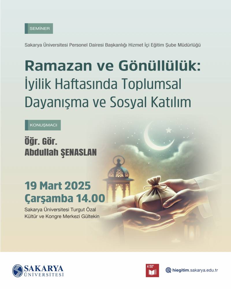 Sakarya Üniversitesinde “Ramazan ve Gönüllülük: İyilik Haftasında Toplumsal Dayanışma ve Sosyal Katılım’’ semineri düzenlendi.