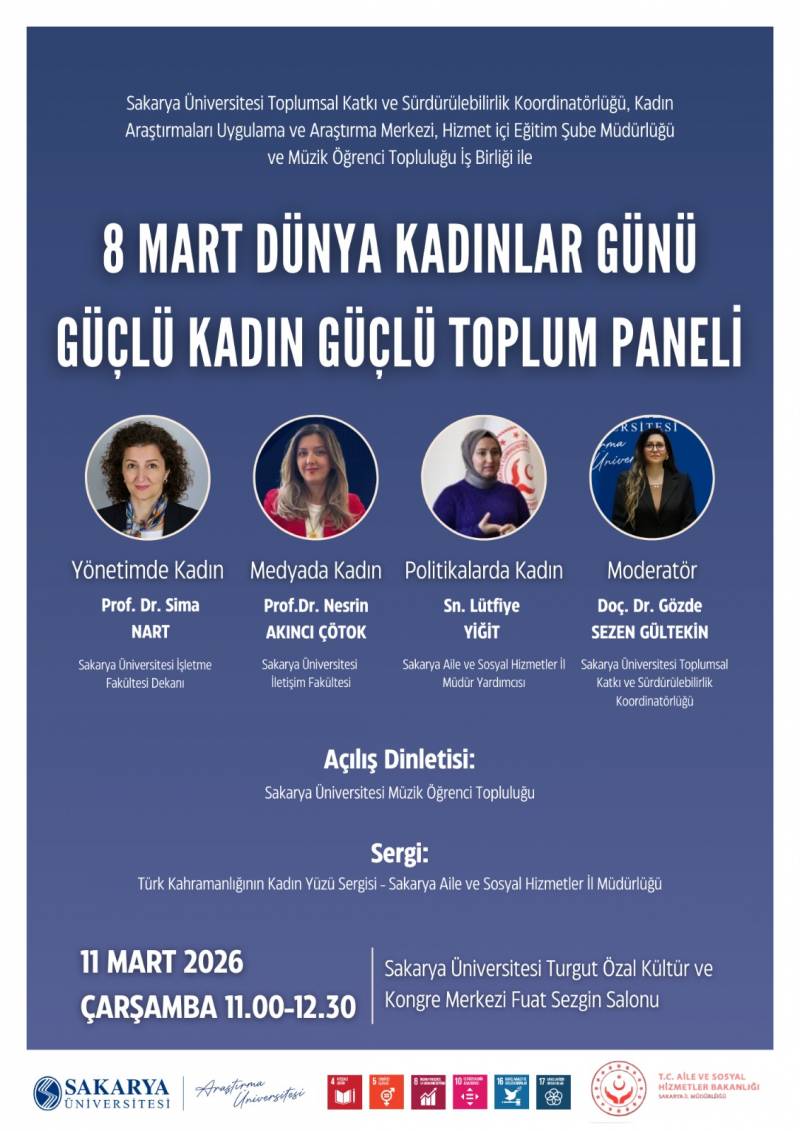 8 Mart Dünya Kadınlar Günü Güçlü Kadın Güçlü Toplum Paneli 11 Mart 2026 tarihinde gerçekleştirilecektir.