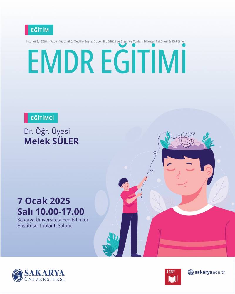Sakarya Üniversitesi Personel Dairesi Başkanlığı Hizmet İçi Eğitim Şube Müdürlüğü, Mediko Sağlık Merkezi Psikolojik Danışma ve Rehberlik Birimi psikologlarına yönelik "EMDR Terapisi" konulu bir eğitim düzenledi.