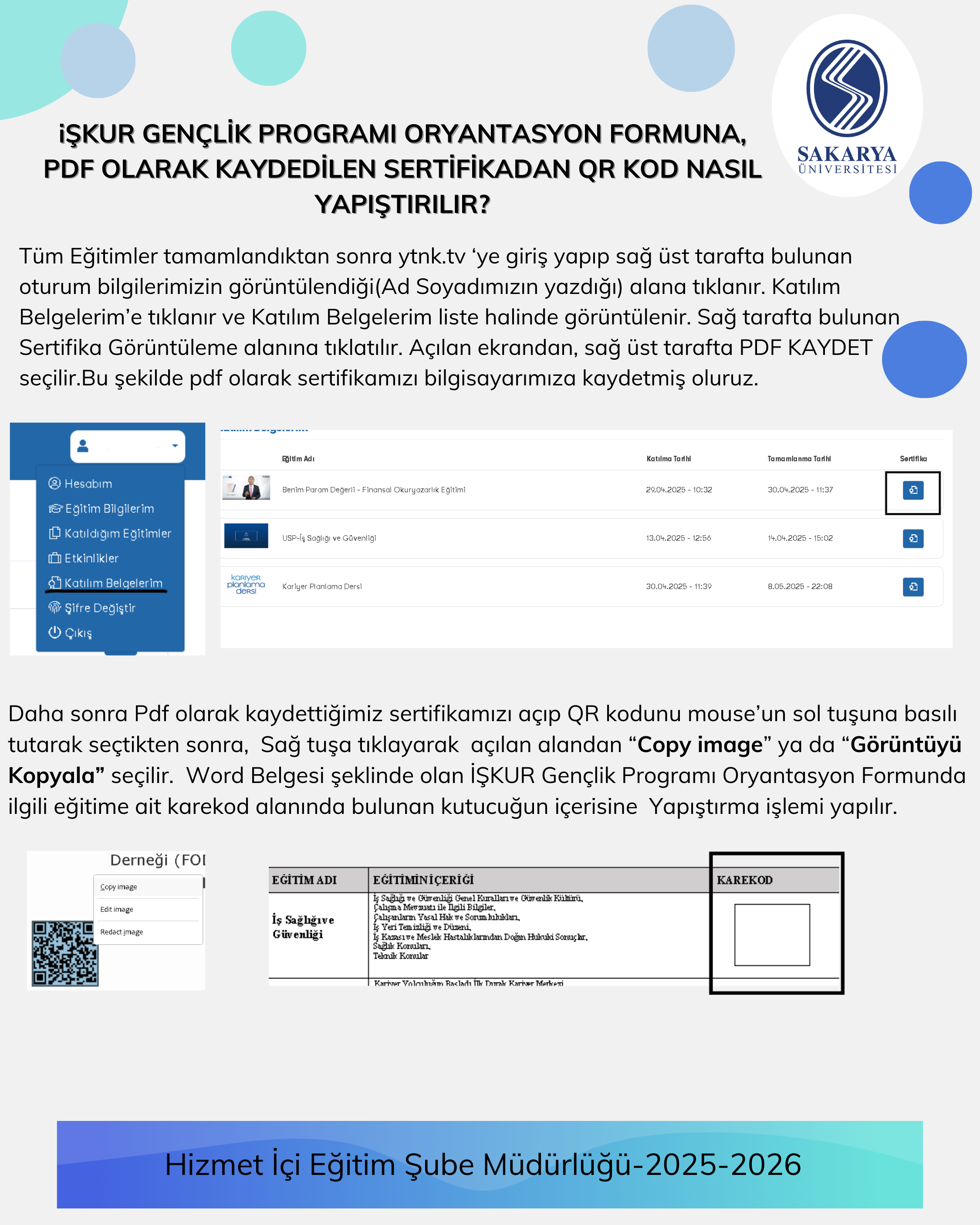 2025-2026 yılı İŞKUR Gençlik Programına ait oryantasyon formu ve kılavuzu.