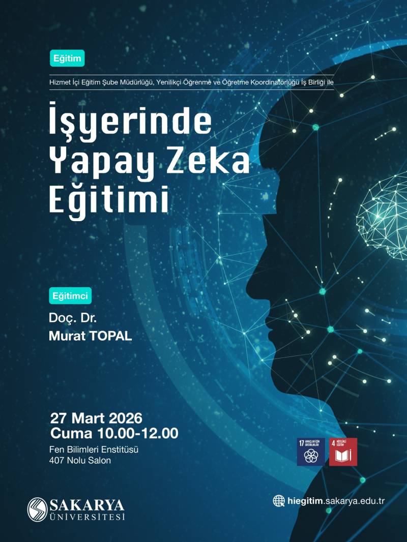 Sakarya Üniversitesi Hizmet İçi Eğitim Şube Müdürlüğü tarafından düzenlenen “İş Yerinde Yapay Zeka” konulu eğitim programı, Fen Bilimleri Enstitüsünde gerçekleştirildi. Akademisyenler, idari personel ve öğrencilerin katılım sağladığı programda, yapay zekaya dair güncel gelişmeler ve uygulama alanları ele alındı. Haberin devamı için...